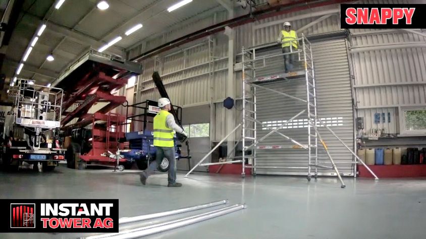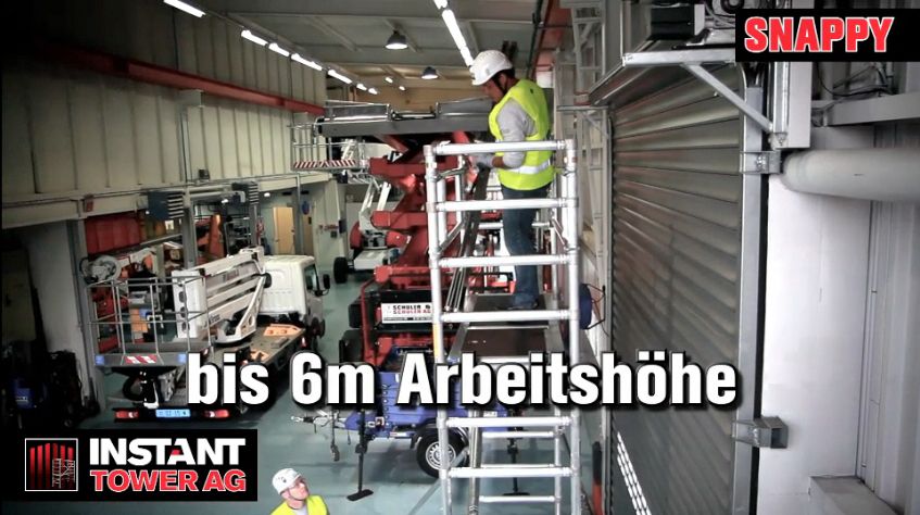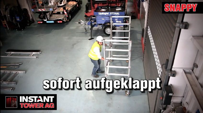1 – 2 – 3 – SNAPPY! In Sekundenschnelle aufgebaut und äusserst robust: Das SNAPPY Aluminium Rollgerüst ist die ideale Gerüst-Arbeitsplattform für Handwerker, Bühnenbau und Industrie – bis 6,0 m ausbaubar!